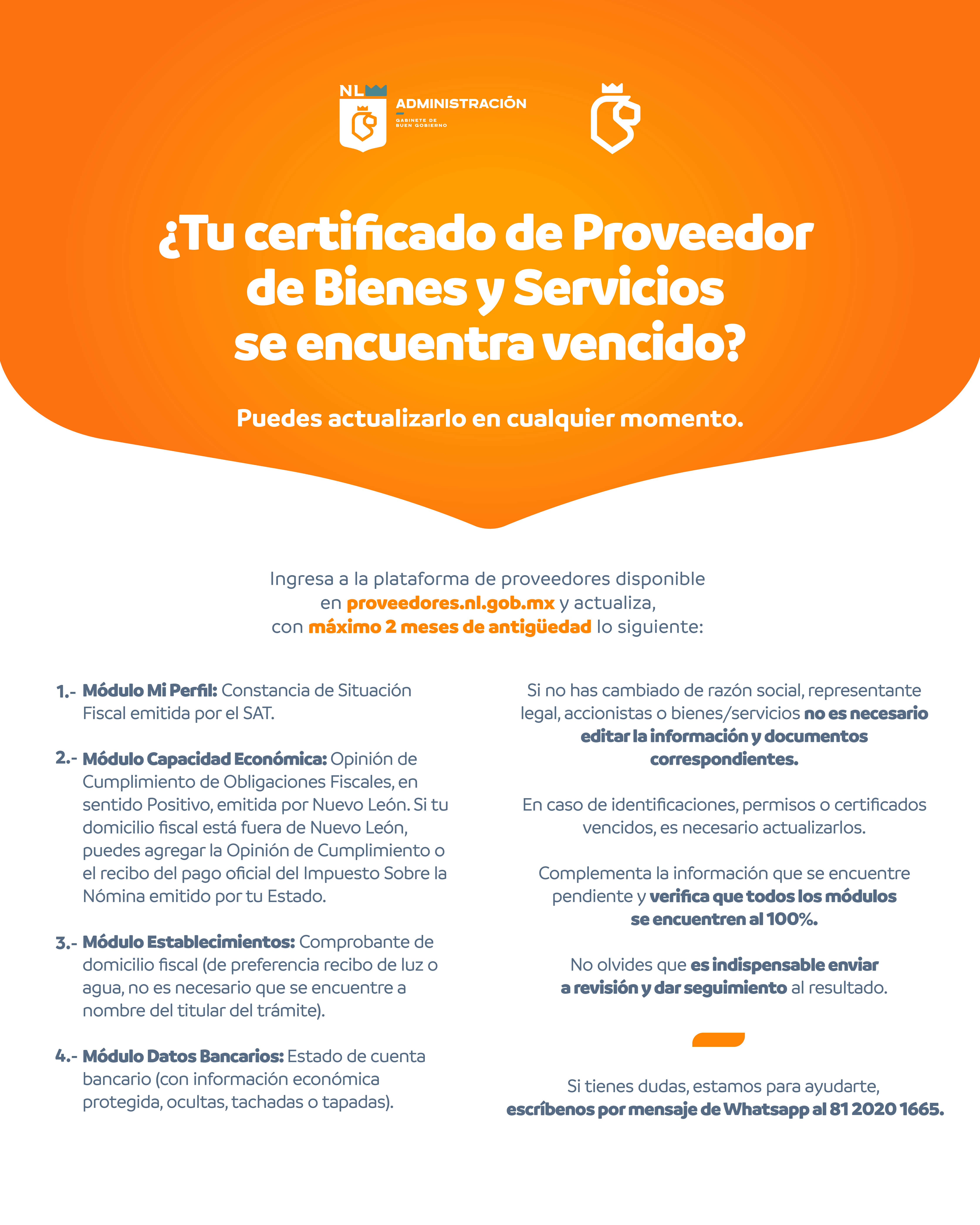 Gobierno del estado de acuerdo a la experiencia de los proveedores de bienes y servicios registrados.